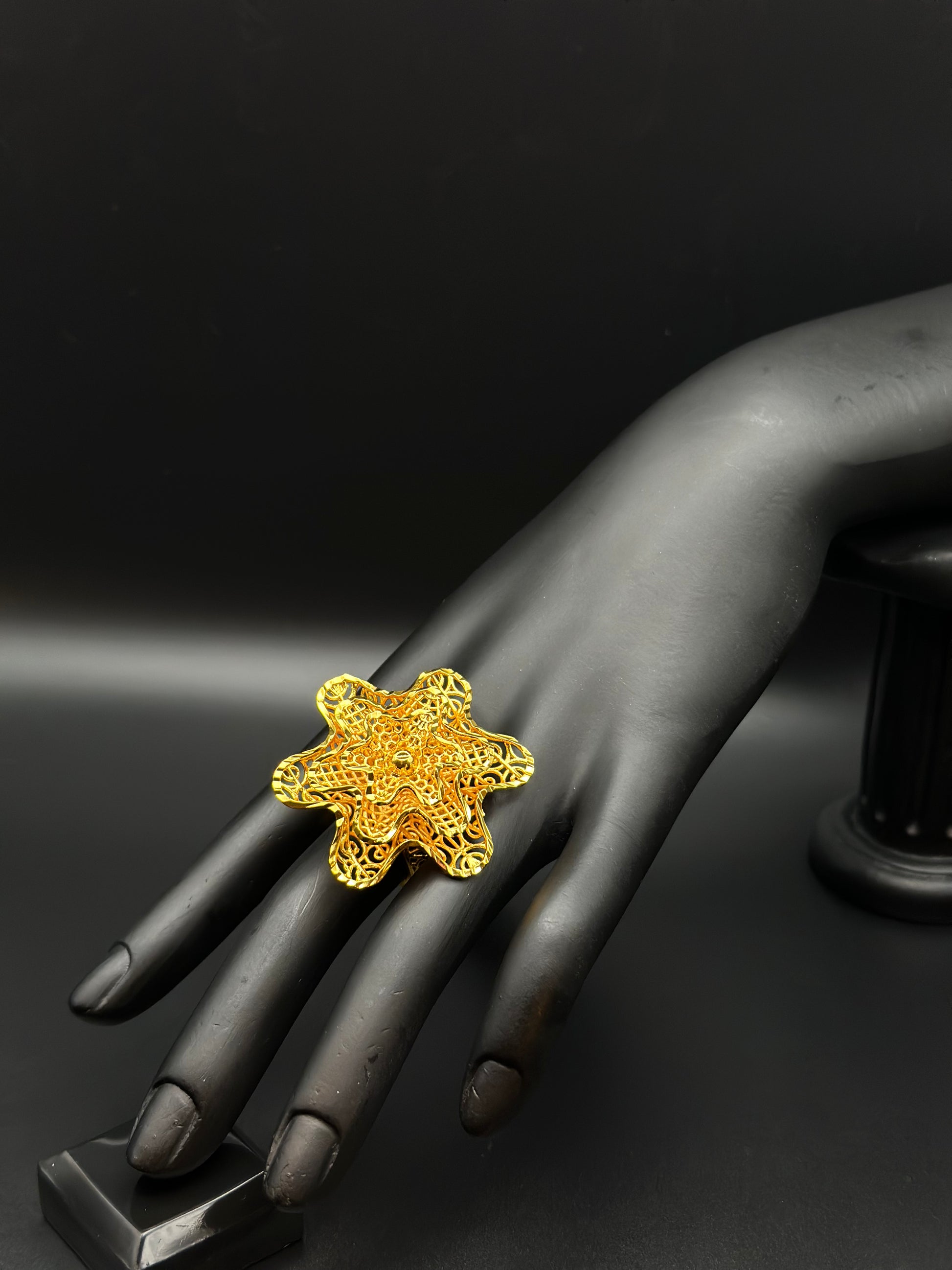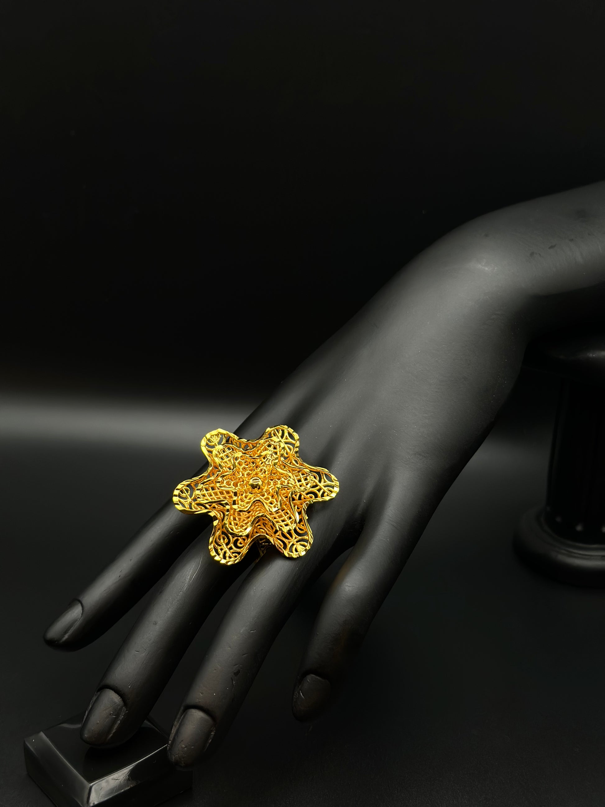 Introducing our exquisite Anta, a true masterpiece of craftsmanship. This stunning ring features an intricate filigree design, meticulously crafted to perfection. Made from high-quality gold, it exudes a luxurious and timeless appeal.