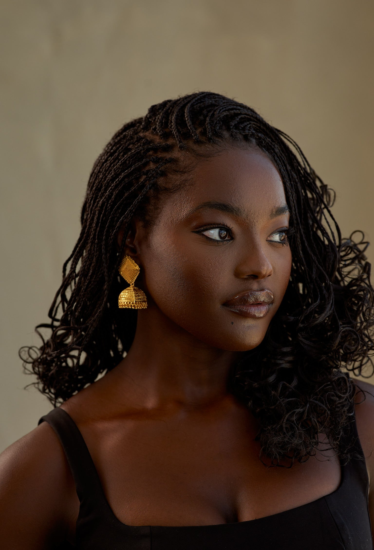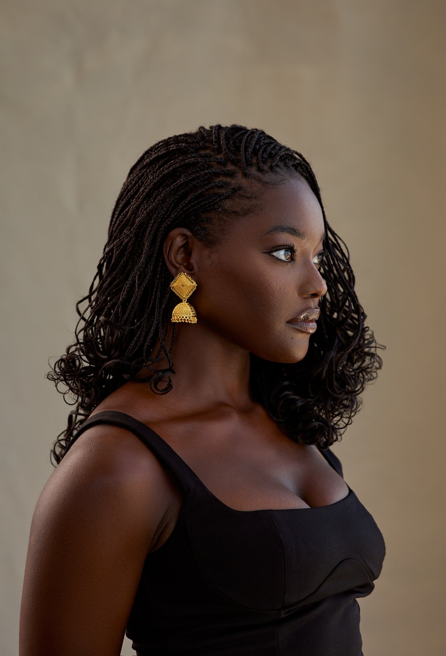 our Kehindé earrings are beautifully crafted with a sleek pyramid shape. Perfect for everyday wear or to elevate your look with a touch of sophistication. Experience the timeless elegance of these versatile earrings.