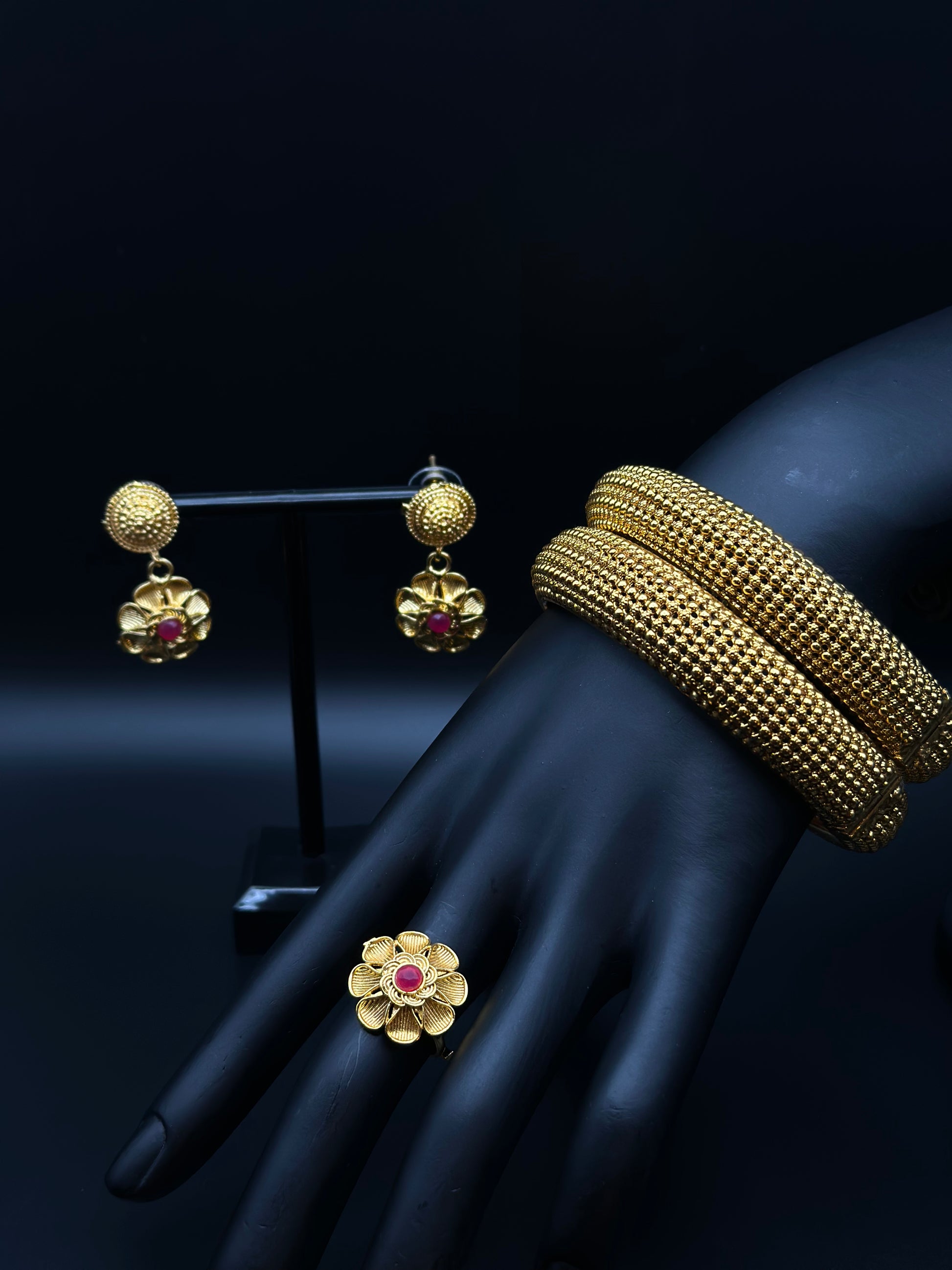 Introducing the stunning Layo collection, a captivating ensemble that includes two bracelets with screw-fastening closures, an adjustable ring, and exquisite earrings. With their antique finish, this jewelry collection exudes an irresistible charm that can effortlessly elevate any look.