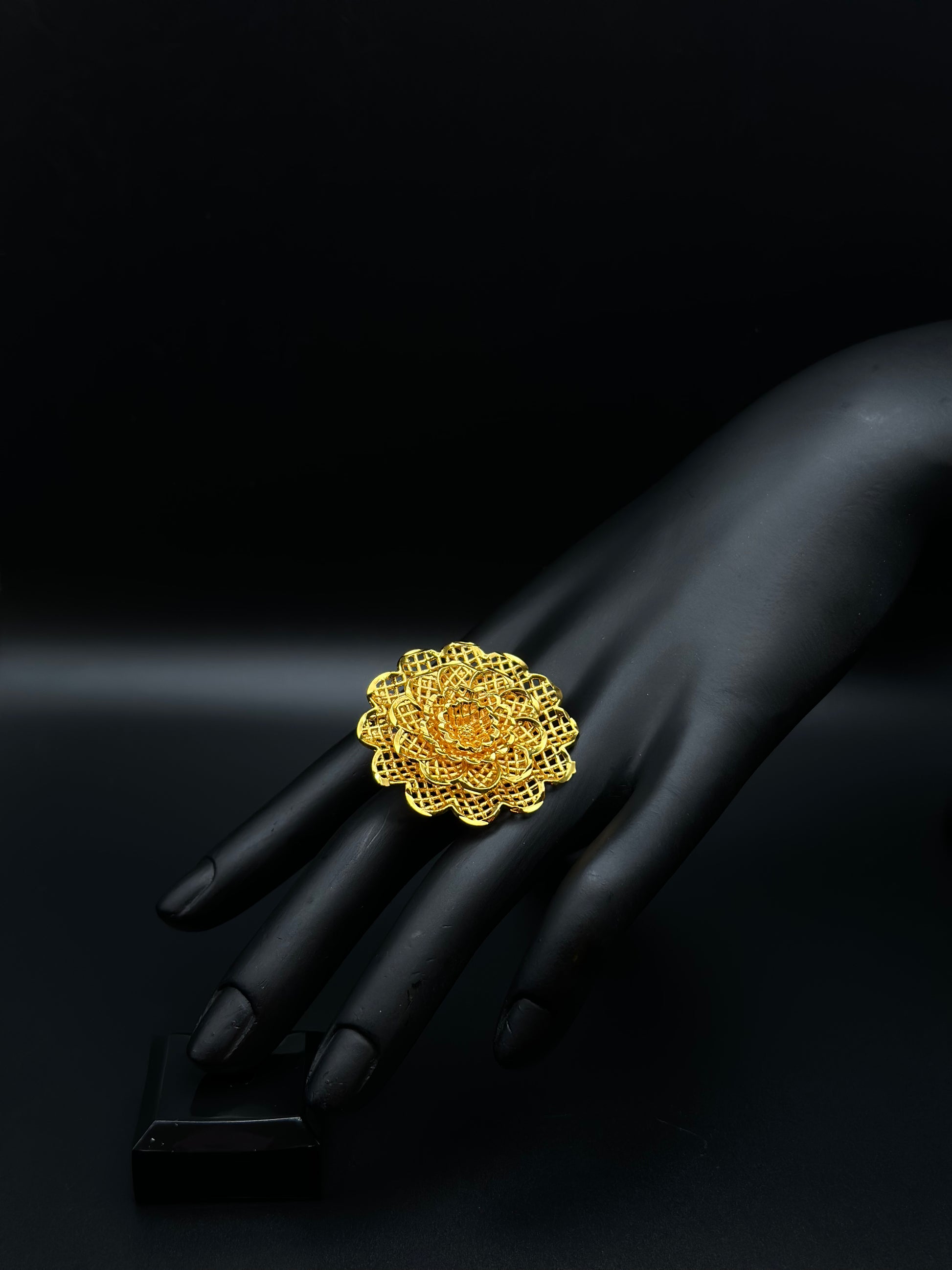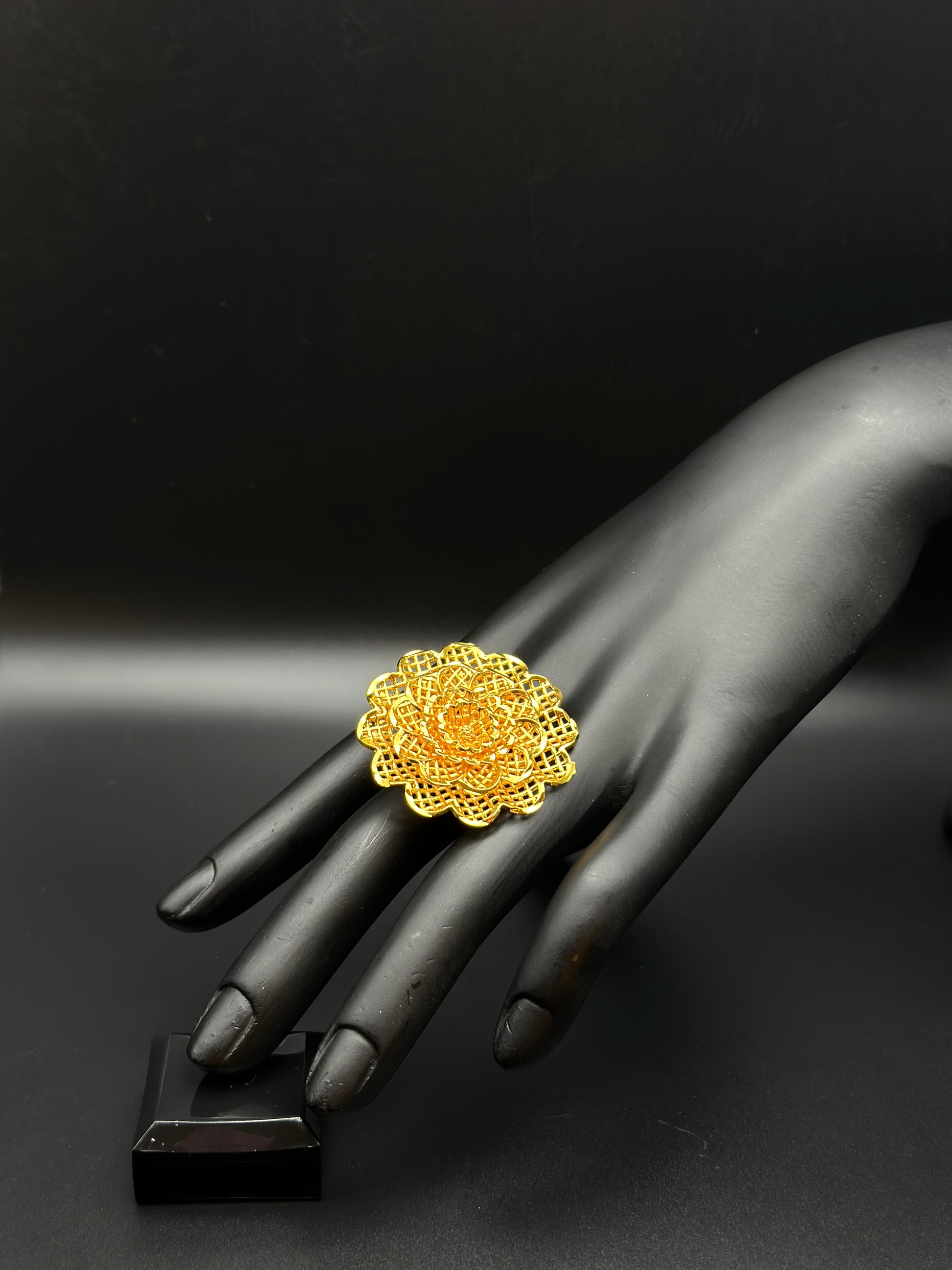 With its delicate filigree pattern, this ring adds a touch of elegance and sophistication to any outfit. It effortlessly transitions from day to night, making it suitable for both casual and formal occasions. Whether you wear it alone or stack it with other rings, this gold filigree ring is a versatile accessory that enhances your personal style.