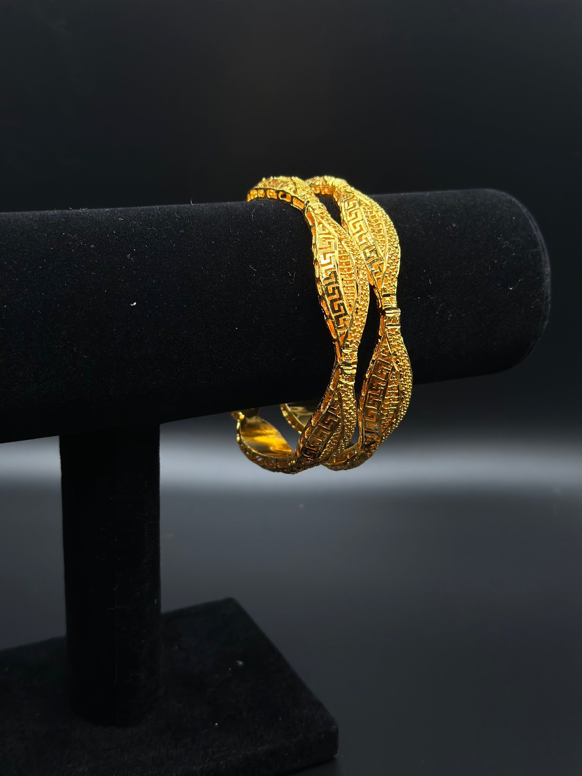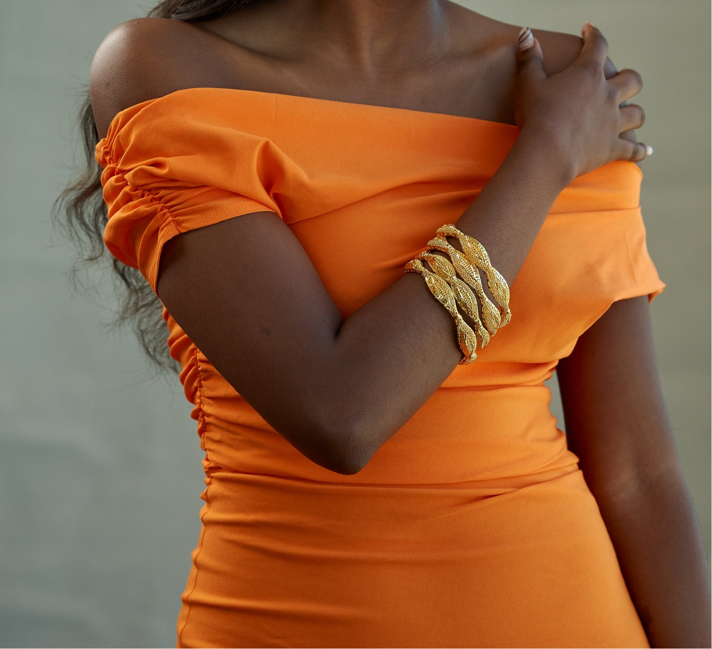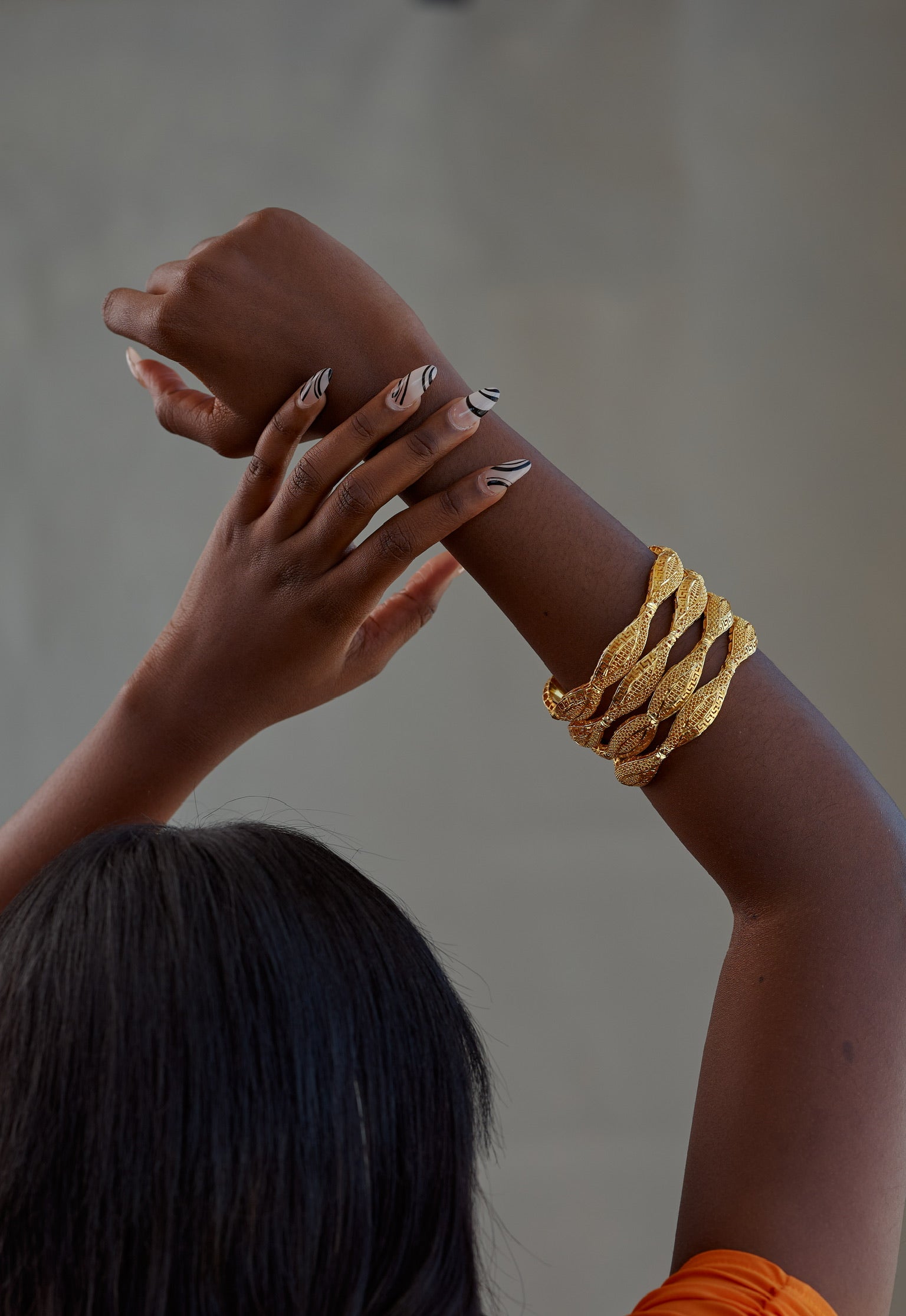 Introducing the captivating Ndeye Bracelets from our Nyambur Nyambur collection. These exquisite gold bangles feature a unique Aztec almond design that is sure to turn heads and evoke admiration.