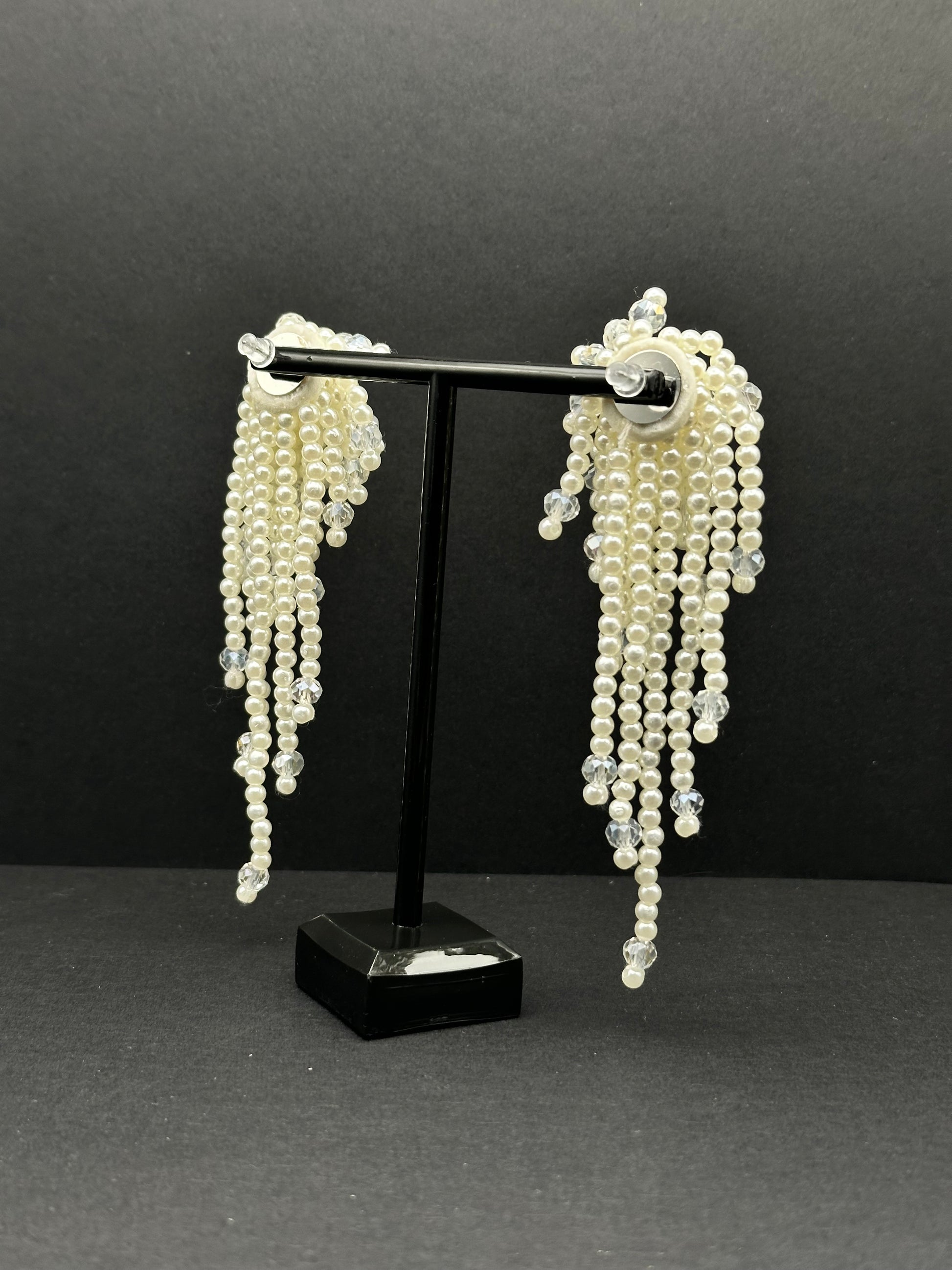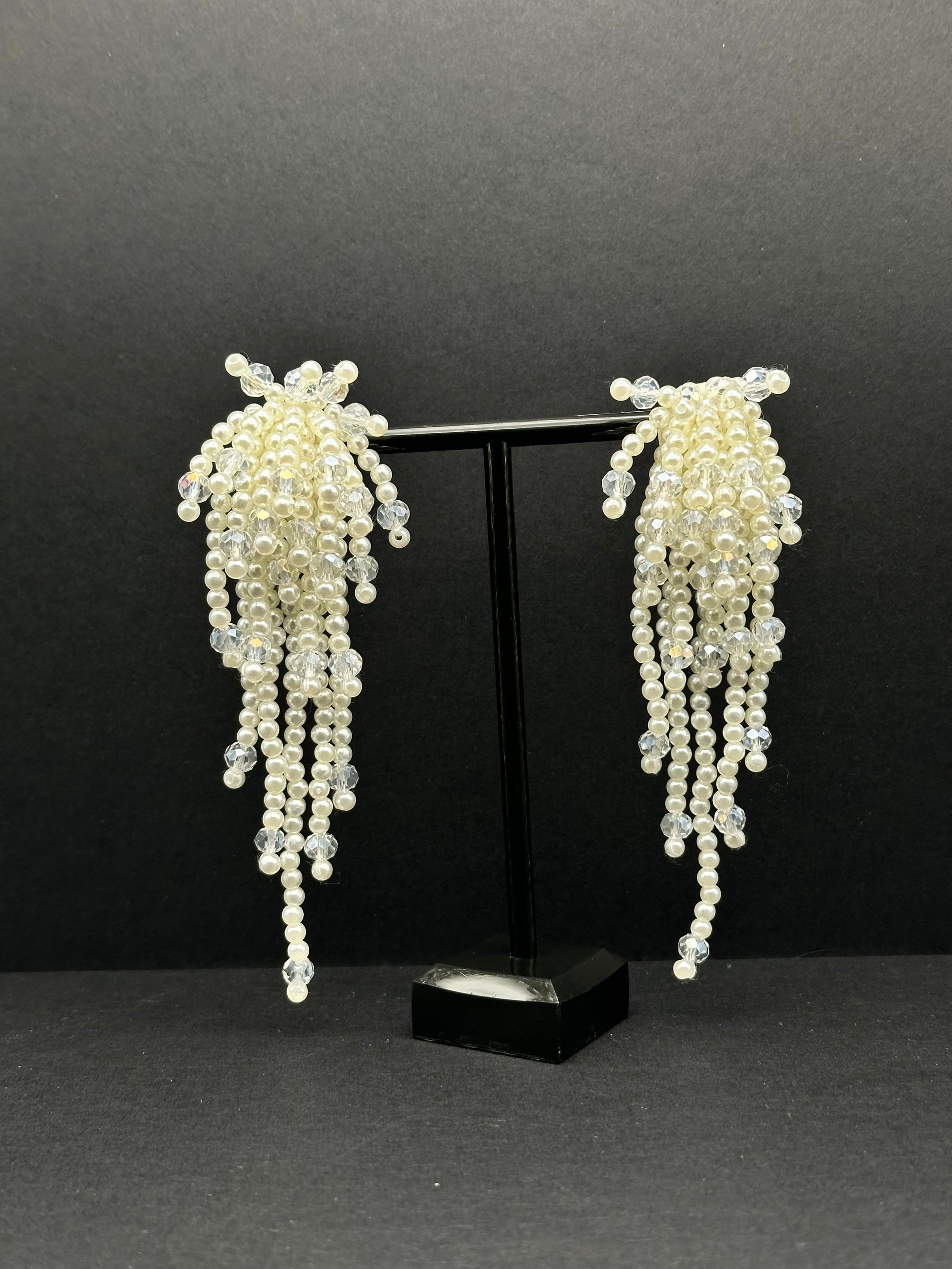 The Oluchi Earrings are a stunning hand-beaded design featuring a beautiful waterfall of pearls. Each earring is carefully crafted to create a graceful, flowing look that catches the light with every movement. Perfect for adding a touch of elegance and sophistication to any outfit, these earrings are ideal for special occasions or whenever you want to make a statement. Timeless, chic, and full of delicate detail, the Oluchi Earrings are a must-have for those who appreciate craftsmanship and beauty.