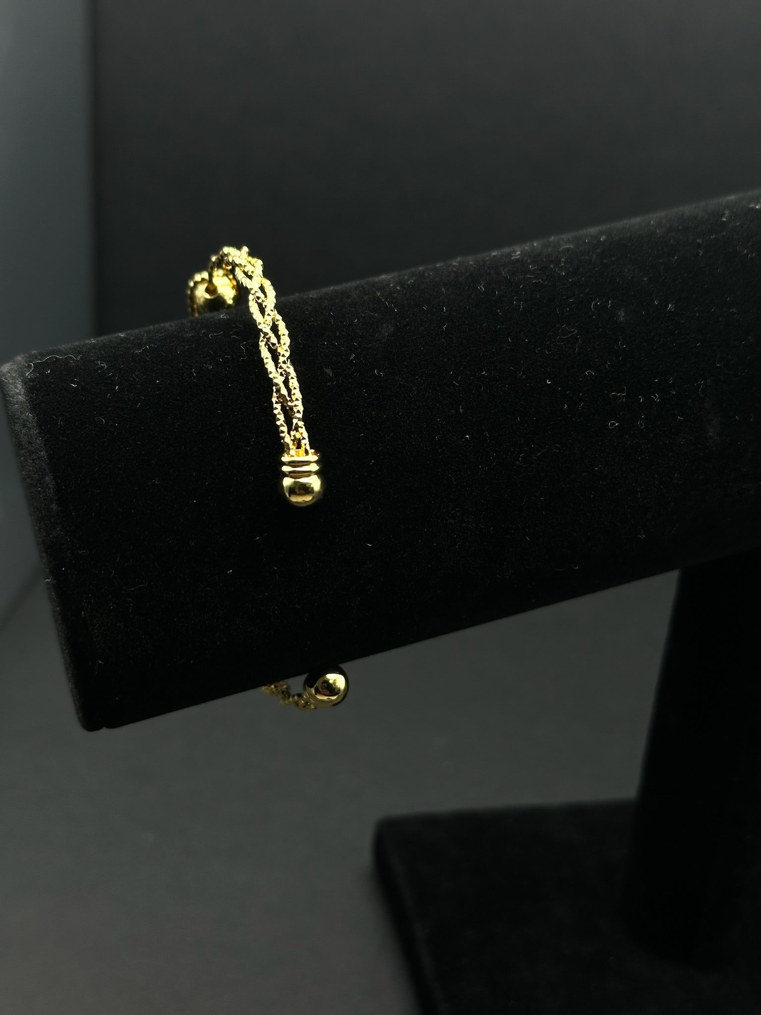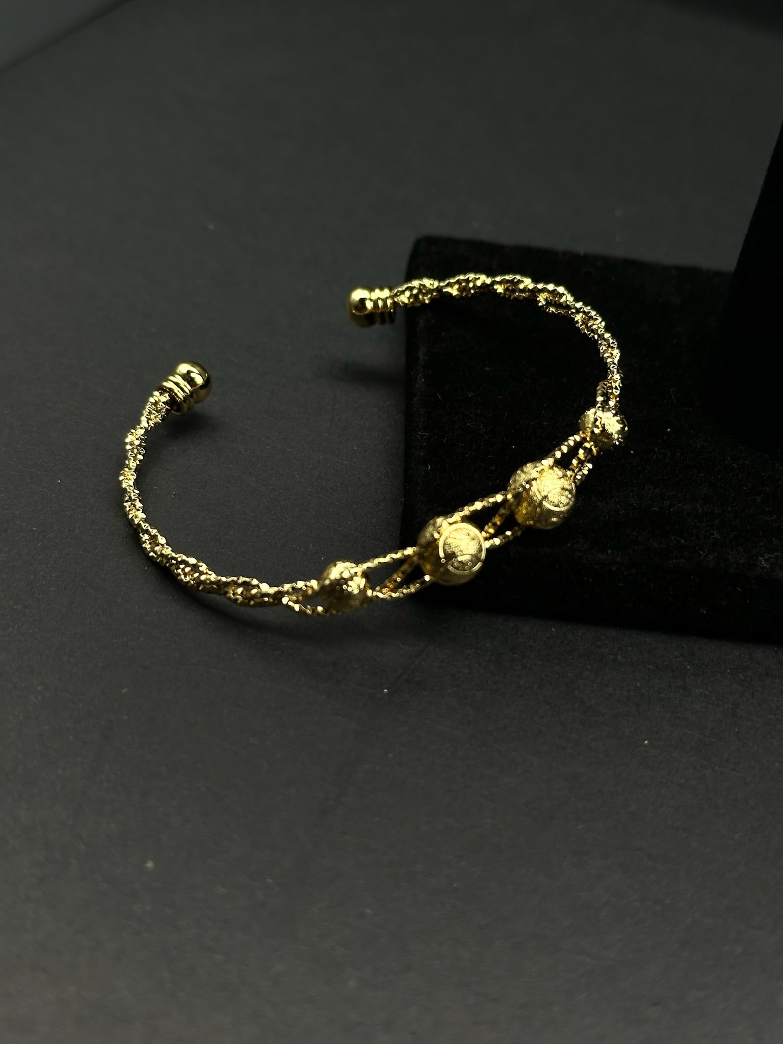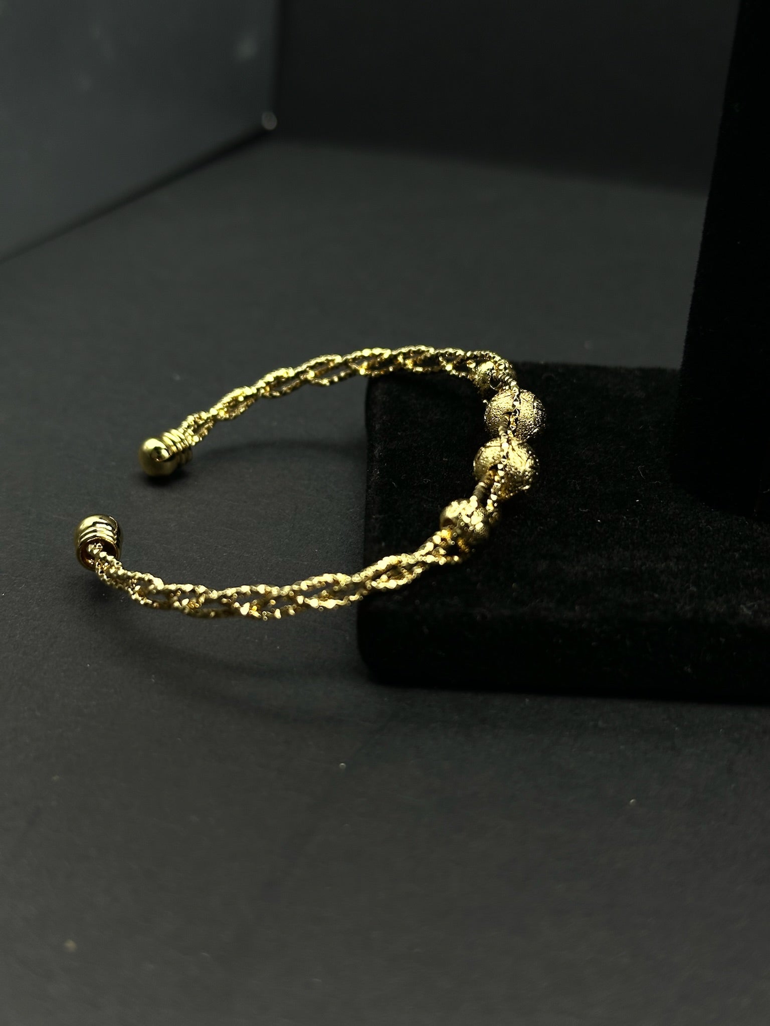 The Orisa Bracelet is a stunning combination of texture and elegance. Designed with an open clasp, this braided cuff features polished gold beads that add a touch of sophistication. Perfect for wearing solo as a statement piece or stacked with other favorites, the Orisa Bracelet is versatile enough to complement any style. Its unique design and lightweight feel make it a must-have for everyday wear or special occasions.
